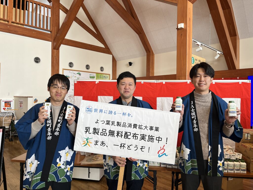 青年部理事会では、1月10日(土)から11日(日)の二日間にわたり、道の駅「ピア21しほろ」で開催された「大新春まつり2026」の2日目に参加し、乳製品の消費拡大を目的としたPR活動を実施しました。